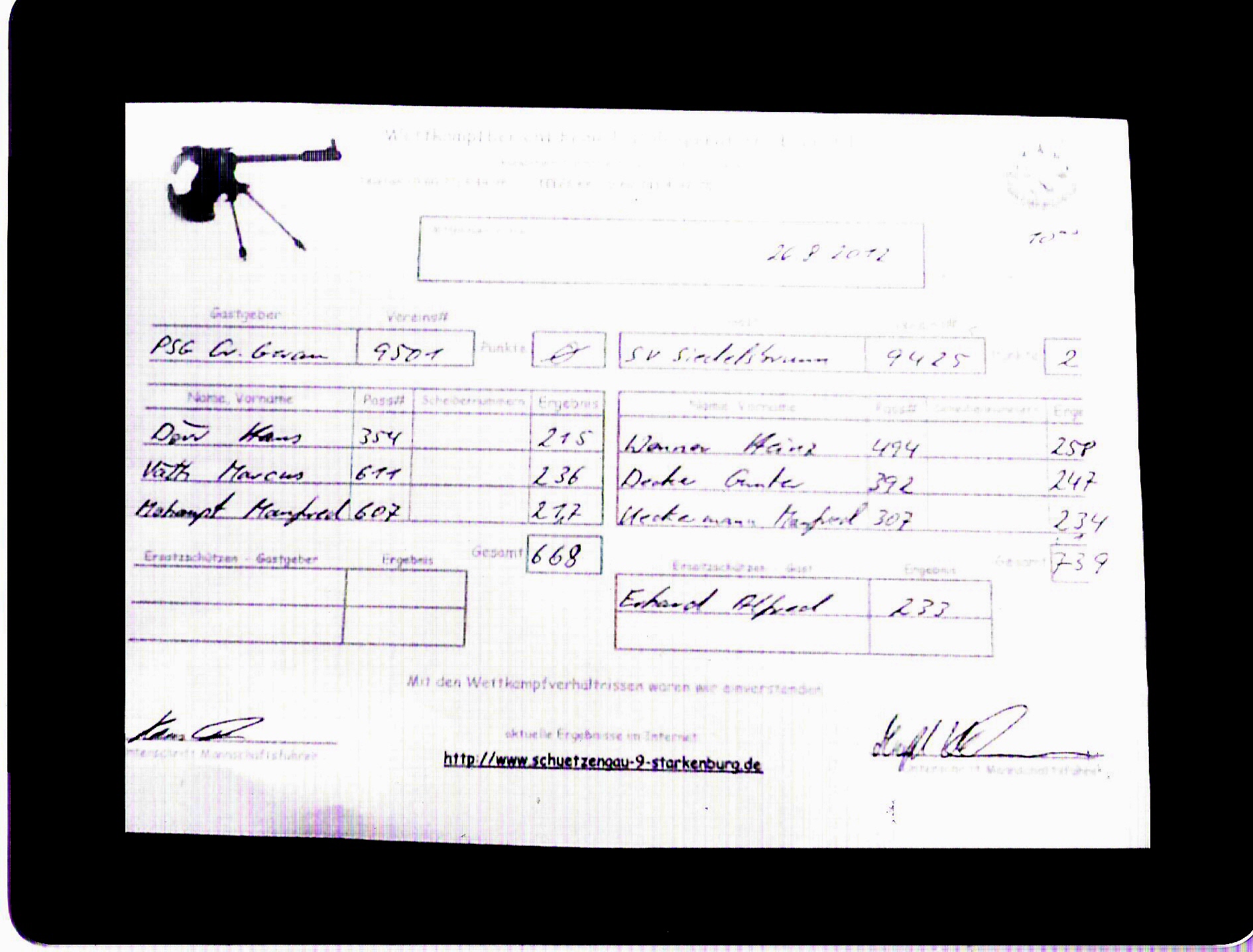 Wettkampfergebnisse Gauliga Freie Pistole 2012