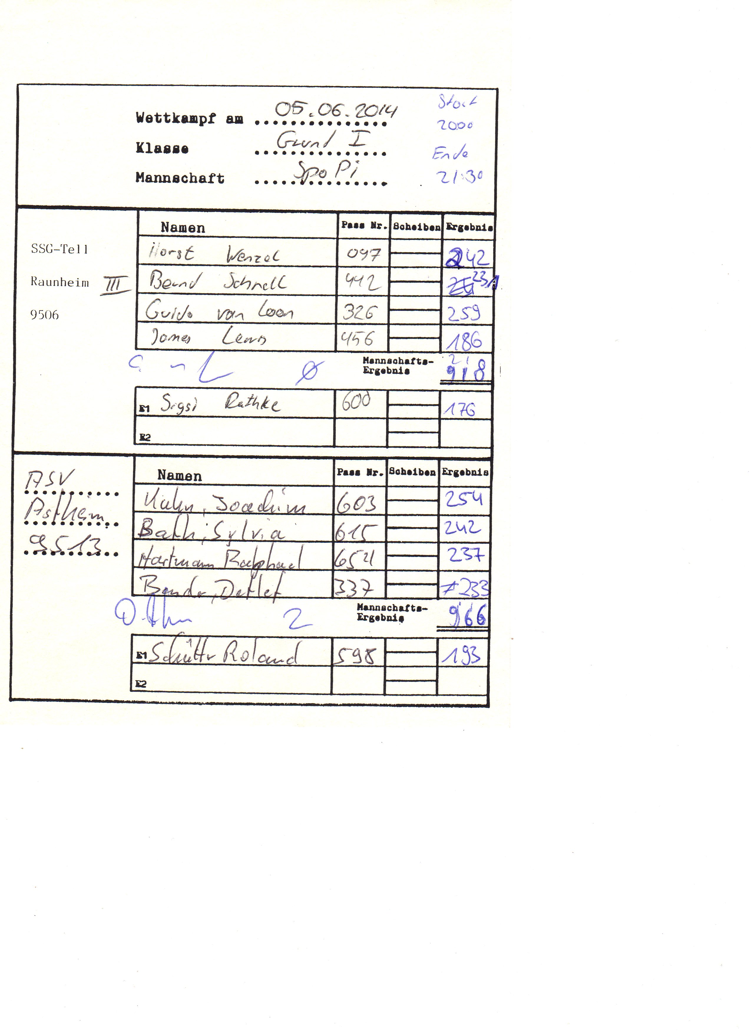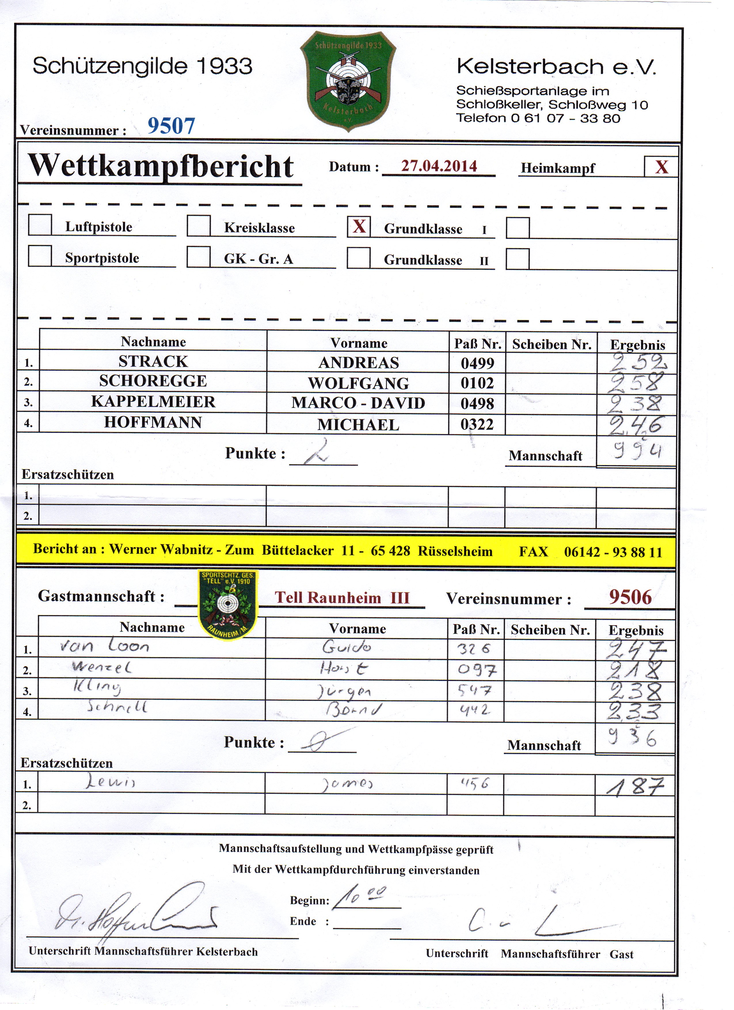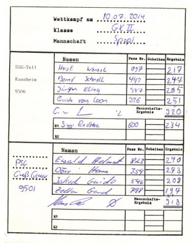 Wettkampfbericht 9. Wettkampftag SSG Tell Raunheim 3 vs. PSG Groß-Gerau 2 Wettkampfbericht 6. Wettkampftag SSG Tell Raunheim 3 vs. SGi Kelsterbach 1 Wettkampfbericht 5. Wettkampftag SSG Tell Raunheim 3 vs. ASV Astheim 1 Wettkampfbericht 1. Wettkampftag SG Kelsterbach 1 vs. SSG Tell Raunheim 3