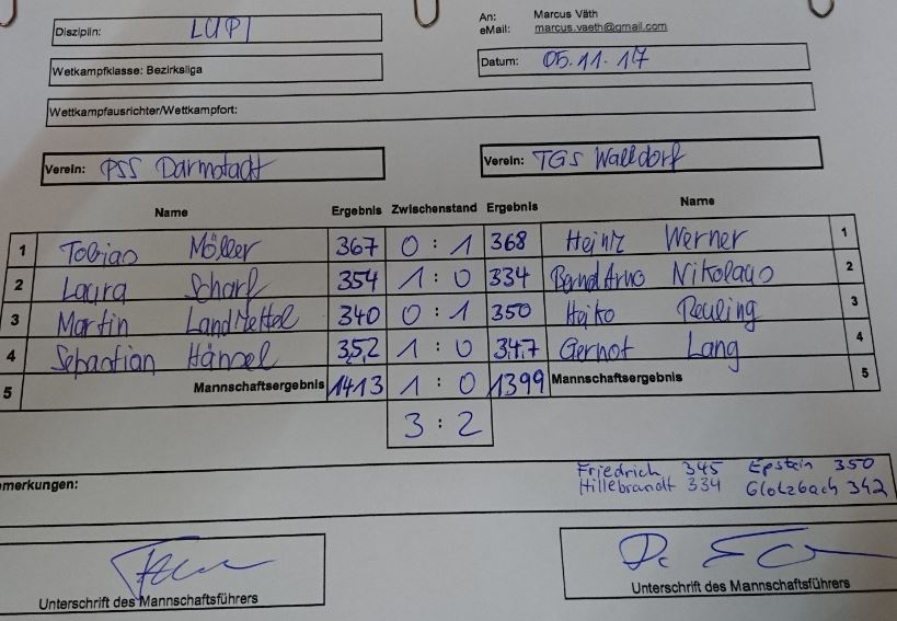 Walldorf 1 vs. PSS Darmstadt 1 |