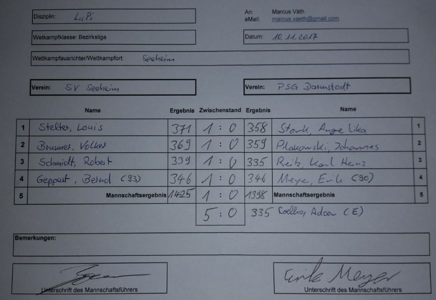 SV Seeheim 1 vs PSS Darmstadt 1 |