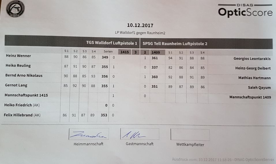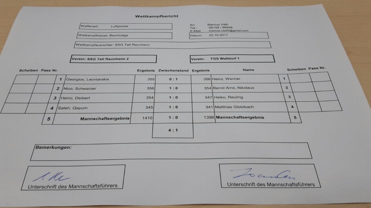Walldorf 1 vs. SSG Tell Raunheim 1 |