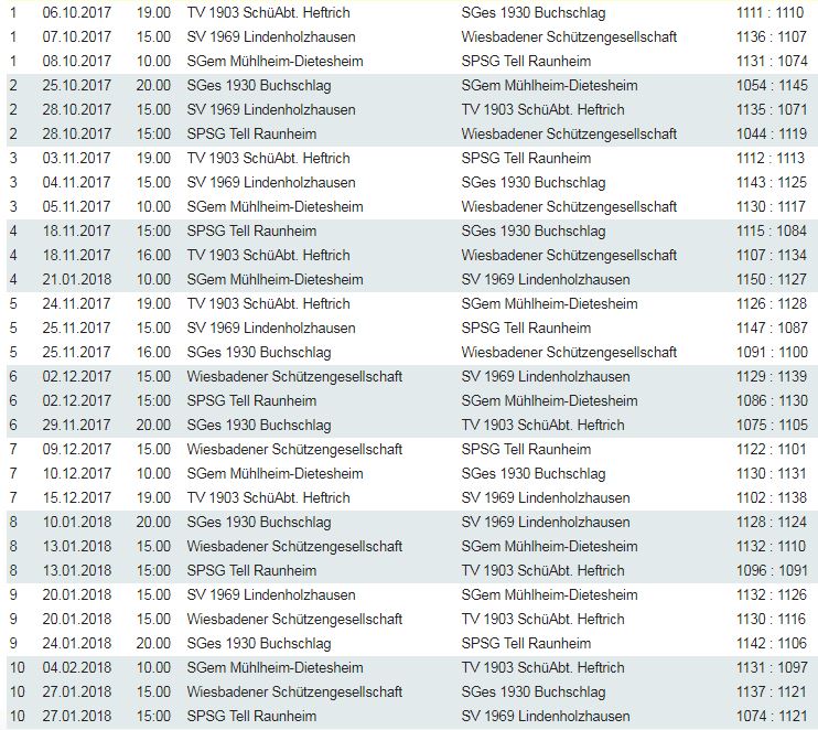 Wettkampfergebnisse Oberliga Süd Großkaliberkurzwaffe 2017