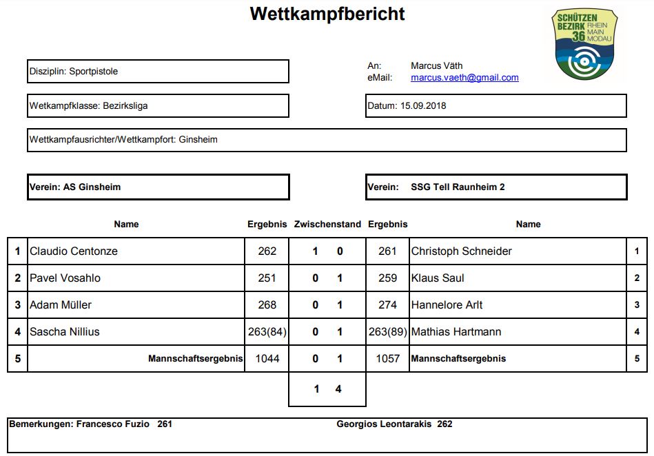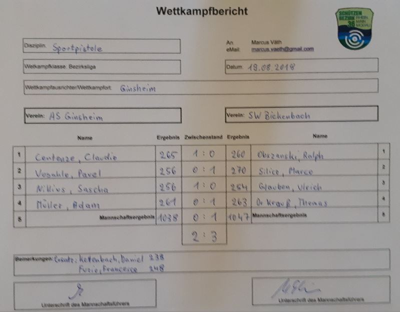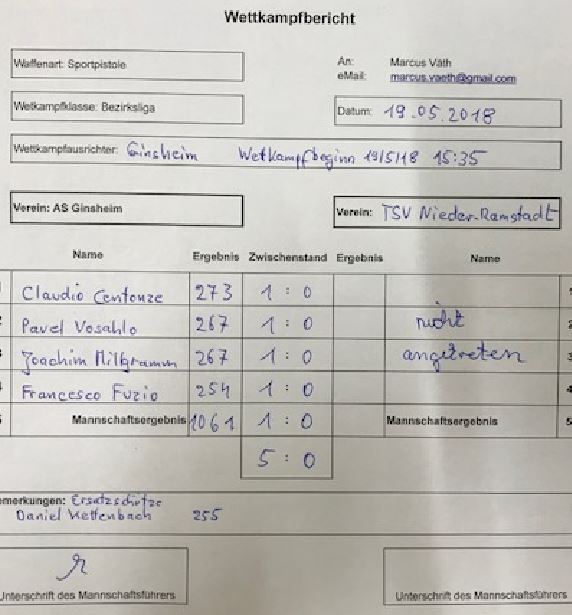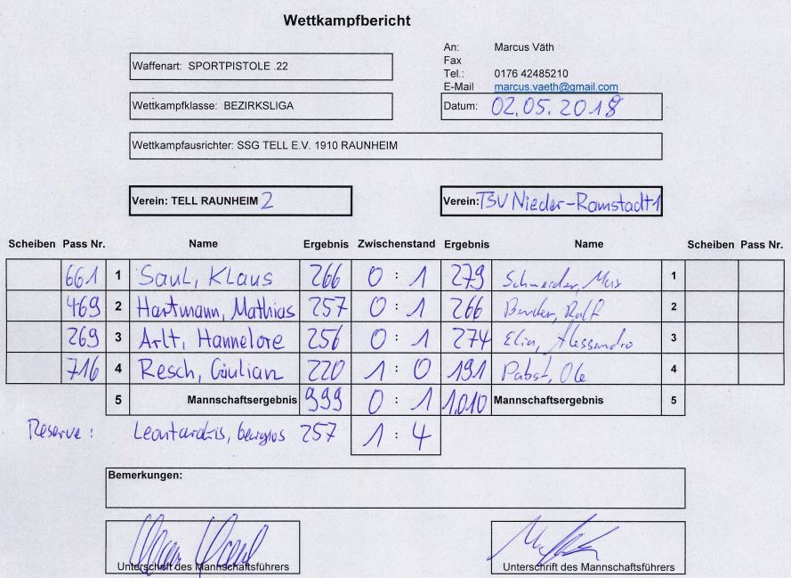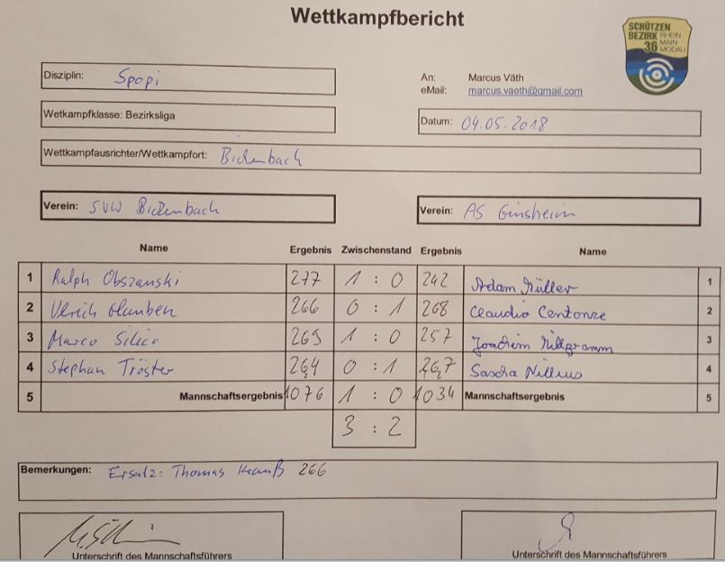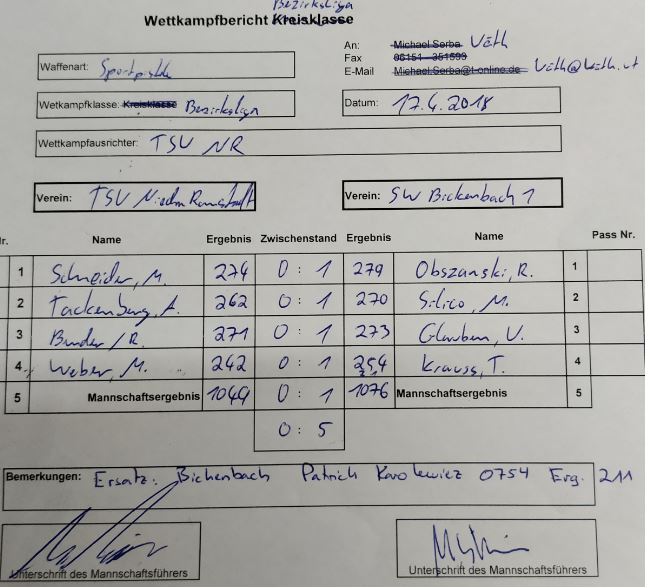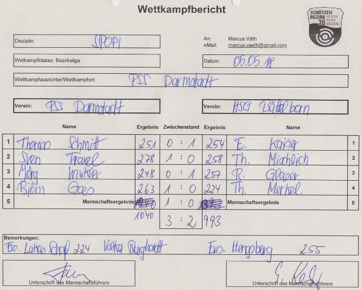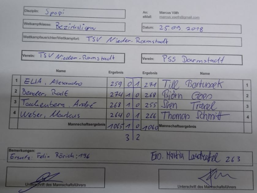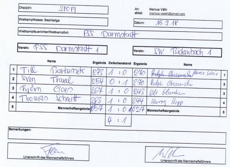 PSS Darmstadt 1 vs SW Bickenbach 1 |