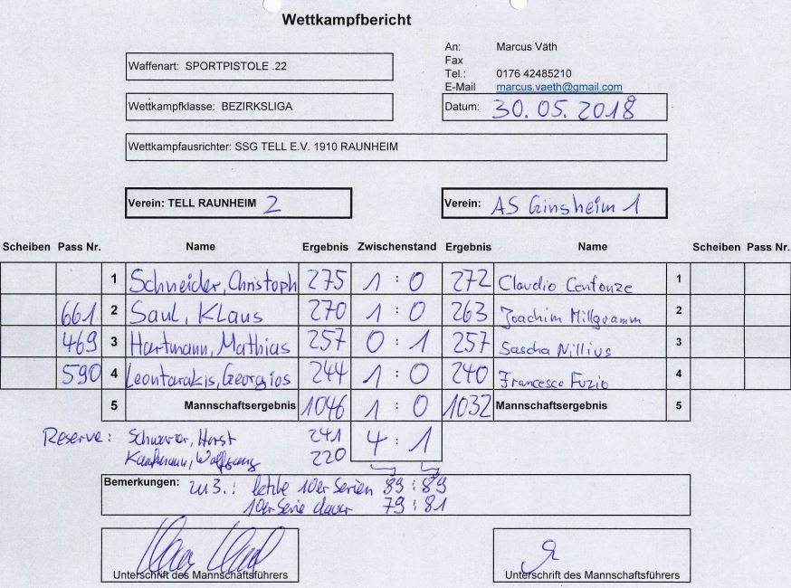 Raunheim 2 vs. PSS Darmstadt 1 |