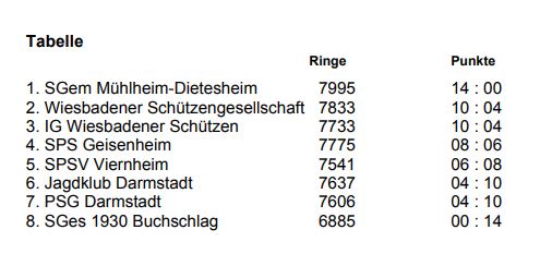 Wettkampfergebnisse Oberliga Süd Großkaliberkurzwaffe 2023