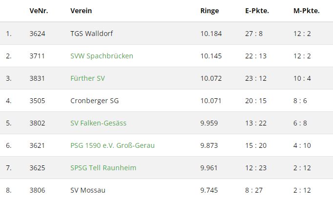 Wettkampfergebnisse Oberliga Süd Luftpistole 2024 / 2025
